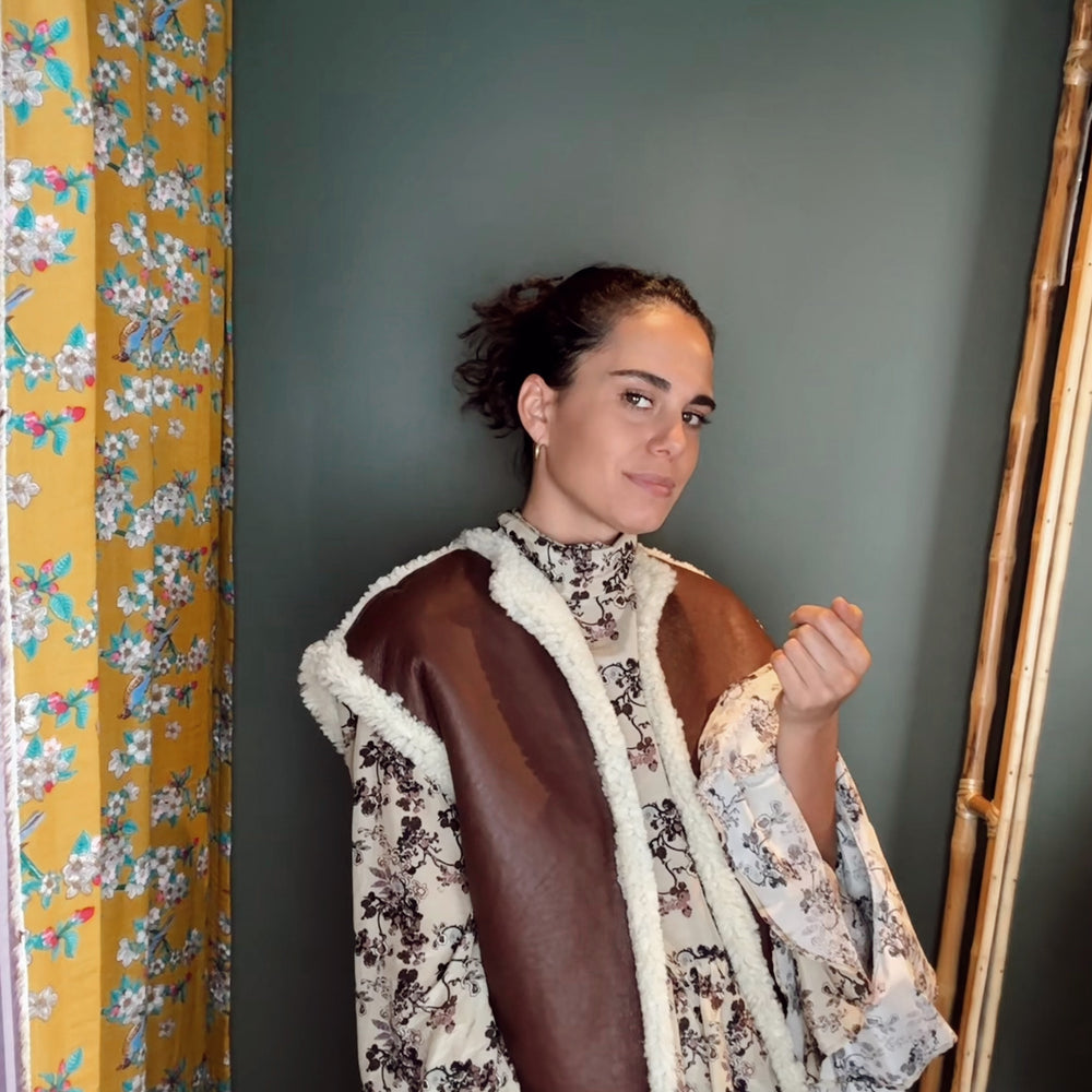 Chaqueta Borrego Reversible Café - Camel